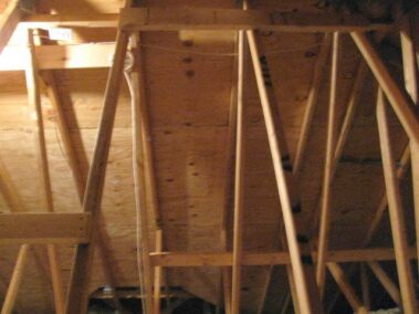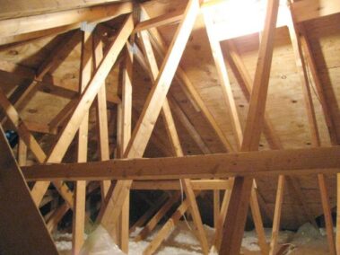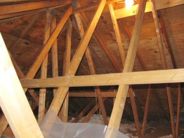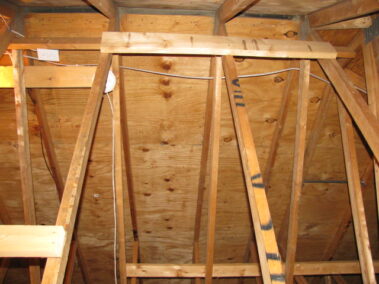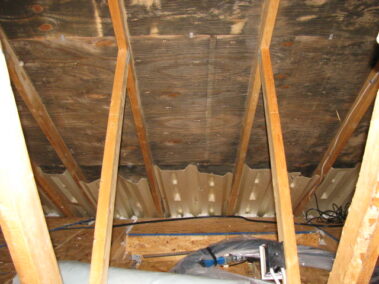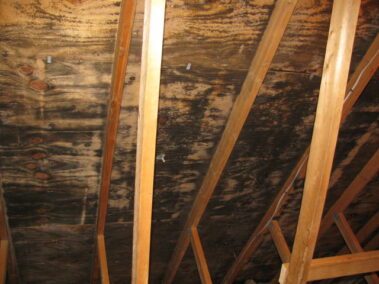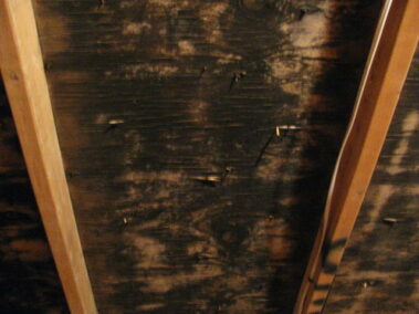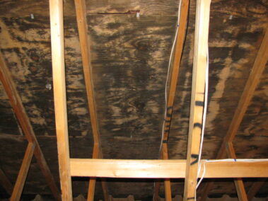 Note: Mold remediation to attic ceilings with deep mold staining is best accomplished with our chemical method versus dry ice blasting. This is because dry ice blasting cannot penetrate deep enough into the wood to remove the dark mold stains.
